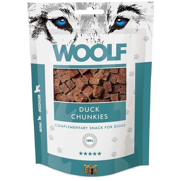 WOOLF pochoutka duck chunkies 100gSkladem75 Kč/ ks67 Kč bez DPH