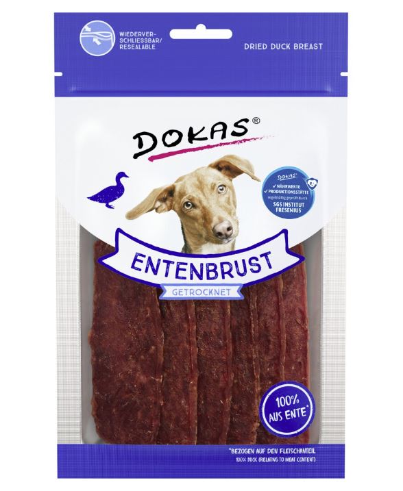 Pamlsky Dokas jsou bez konzervantů, umělých barviv, dochucovadel a glycerinu. Sáček má praktické uzavírání, pamlsky tak zůstanou déle čerstvé a voňavé.