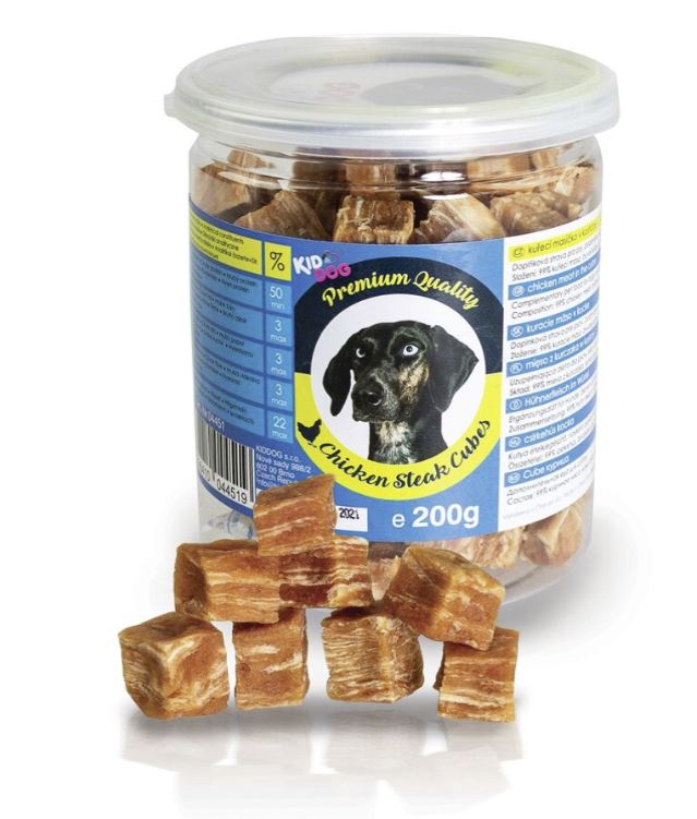 KIDDOG kuřecí masíčko v kostičce - PREMIUM QUALITY 200 g dóza